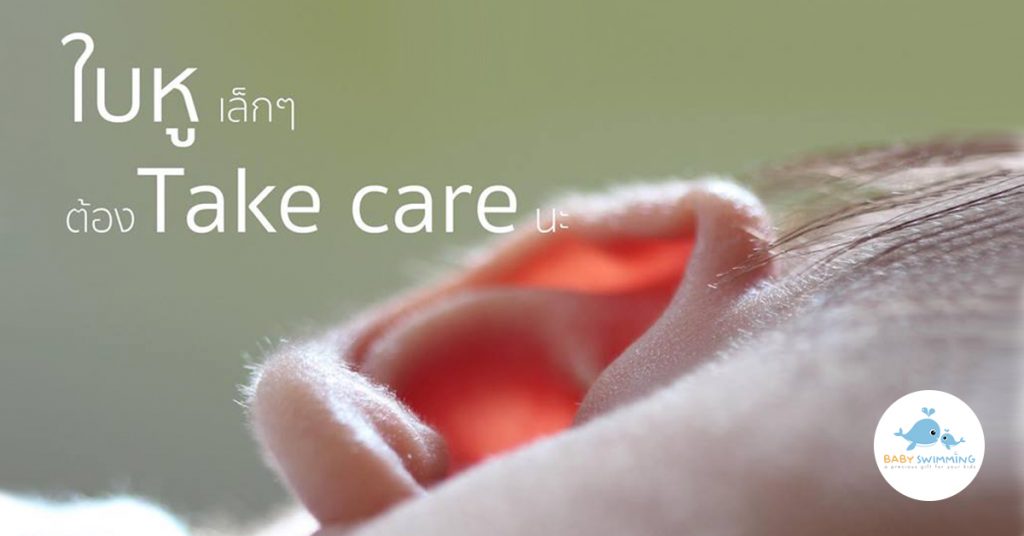 - ถ้าน้ำเข้าหูลูก ให้เอียงให้หูข้างที่น้ำเข้าต่ำลงน้ำจะไหลออกมาได้เองค่ะ ไม่จำเป็นต้องใช้ Cotton bud ทำความสะอาดเพราะเสี่ยงต่อการบาดเจ็บ เลือดออกหรือเยื่อแก้วหูทะลุได้ค่ะ