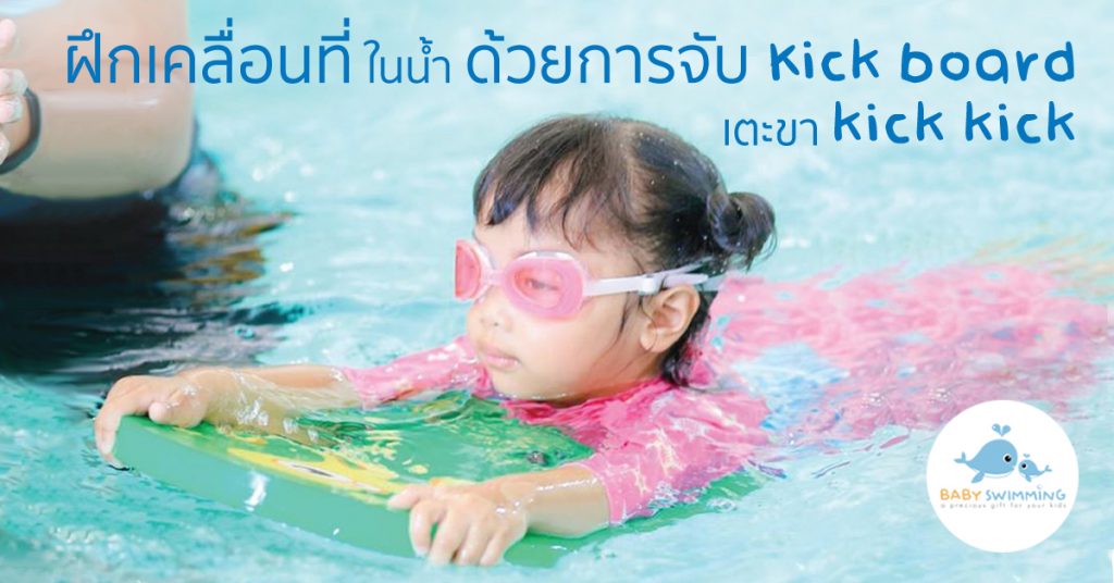 - การฝึกจับ Kick board เตะขา Kick Kick จะช่วยเสริมทักษะการเตะเท้าอย่างถูกวิธีของลูกน้อยนะคะซึ่งเป็นพื้นฐานที่ช่วยให้เขาสามารถว่ายน้ำอย่างถูกต้องต่อไปค่ะ