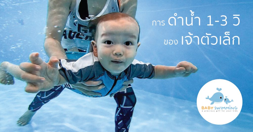 - ฝึกให้เจ้าตัวเล็กกลั้นหายใจบนบกอย่างน้อย 3 วินาทีก่อนที่จะพาดำน้ำ