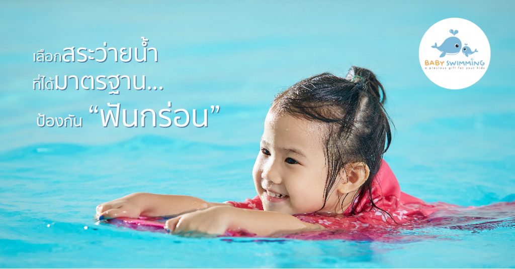 - หากสระที่เจ้าหนูว่ายน้ำเป็นสระระบบคลอรีน คุณพ่อคุณแม่อาจต้องไปขอคำแนะนำจากหมอฟันเพื่อทำเฝือกยางครอบฟันขณะว่ายน้ำให้ลูก ป้องกันไม่ให้ฟันสัมผัสกับน้ำมากเกินไปค่ะ