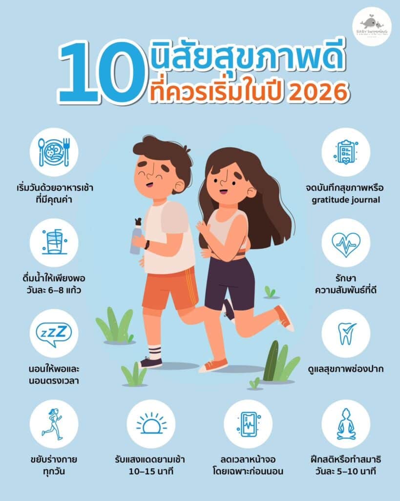การสร้างนิสัยสุขภาพดีๆ ในปี 2026 ไม่ใช่การทำตามรายการในภาพทีละข้อ แต่คือการจัดสภาพแวดล้อมที่ช่วยให้เด็กฝึกพฤติกรรมดี ๆ ได้เองโดยไม่รู้ตัว การกิน นอน ขยับร่างกาย ลดหน้าจอ และดูแลสุขภาพจิตใจ ล้วนเชื่อมโยงกันอย่างลึกซึ้ง และส่งผลต่อพัฒนาการของเด็กในทุกมุม รวมถึงทักษะการว่ายน้ำที่เป็นทั้งกีฬาและทักษะชีวิตที่สำคัญ