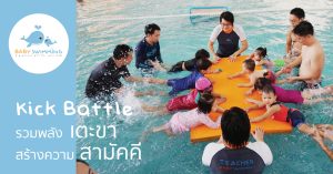 การจะว่ายน้ำได้ดีและสามารถเอาตัวรอดทางน้ำได้นั้น เจ้าตัวเล็กของคุณพ่อคุณแม่จำเป็นต้องได้รับการสร้างทักษะพื้นฐานหลายอย่างติดตัวนะคะ ซึ่งหนึ่งในนั้นก็คือการเตะขาและเรียนรู้วิธีที่จะขยับขาทั้งสองข้างในน้ำ แต่ฝึกเตะขาคนเดียวไปนานๆ ลูกรักอาจจะพานเบื่อเอาได้ค่ะ เราเลยขอเอาใจวัยจิ๋วด้วยกิจกรรมแสนสนุกมาฝึกเตะขากันเป็นทีมแบบ Kick Battle ค่ะ สนุกรวมพลัง Kick Battle ก่อนจะไปรวมพลังเตะขา เรามาชวนลูกรักทบทวนวิธีการเตะขาแบบ Kick...