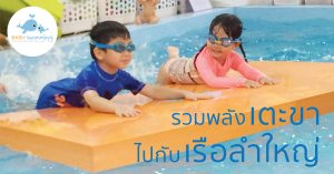 การเตะขาเพื่อให้ตัวเองสามารถเคลื่อนที่ไปข้างหน้าได้นั้น เป็นทักษะสำคัญของการว่ายน้ำและการตัวรอดในน้ำของเจ้าตัวเล็กนะคะ เพราะเมื่อเคลื่อนที่ไปข้างหน้าได้ ลูกจะสามารถโผเข้าหาฝั่ง หรือเกาะสิ่งต่างๆ เพื่อความปลอดภัยได้ ดังนั้น วันนี้เราจะชวนคุณและลูกน้อยมาเรียนรู้วิธีเตะขากันค่ะ แต่ไม่ให้เจ้าตัวจิ๋วกดดันเพราะถูกฝึกอยู่คนเดียวหรอกนะคะ เราจะให้เขาได้สนุกไปพร้อมกับเพื่อนๆ ในสระด้วยต่างหาก แต่จะด้วยวิธีการอะไรต้องตามมาดูค่ะ 1. จินตนาการถึงเรือลำใหญ่ จินตนาการเป็นสิ่งสำคัญมากสำหรับลูกน้อยค่ะ...