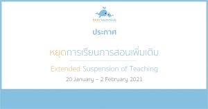 เนื่องจากสถานการณ์การแพร่ระบาดของ COVID-19 ในปัจจุบัน เพื่อความปลอดภัยสูงสุดของสมาชิกและพนักงานทุกท่าน BABY SWIMMING ของดการเรียนการสอนชั่วคราว ตั้งแต่วันที่ 6-19 มกราคม 2564