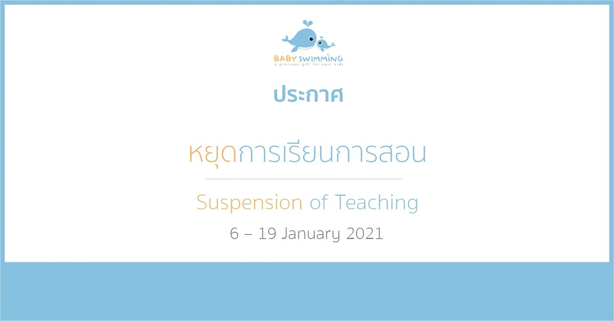🐳 เพื่อให้เป็นไปตามนโยบายภาครัฐในสถานการณ์การแพร่ระบาดของ COVID-19 ในปัจจุบัน BABY SWIMMING ทุกสาขา ขอขยายเวลางดการเรียนการสอนไปจนถึงวันที่ 2 ก.พ. 2564 และจะเปิดทำการอีกครั้งในวันพุธที่ 3 ก.พ. 2564 เป็นต้นไป (ยกเว้นสาขาหัวหินและกระบี่ จะเปิดทำการในวันพุธที่ 20 ม.ค. 64) ทั้งนี้หากมีการเปลี่ยนแปลงใดๆ จะเรียนแจ้งให้ทราบอีกครั้งค่ะ